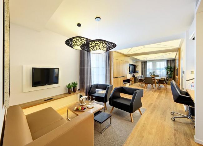 Hotel oferuje dużą liczbę przestronnych, nowocześnie wyposażonych pokoi z klimatyzacją, telewizją satelitarną, minibarem, sejfem i bezpłatnym Wi‑Fi. Komfortowe zaplecze sprawdza się zarówno dla grup turystycznych, klientów biznesowych, jak i wycieczek szkolnych.