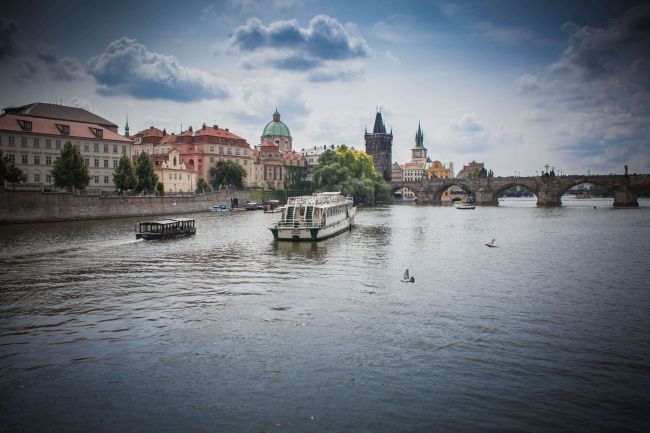 Statki wypływają z Nabrzeża Dvořáka, tuż przy Moście Czecha — zaledwie kilka kroków od: